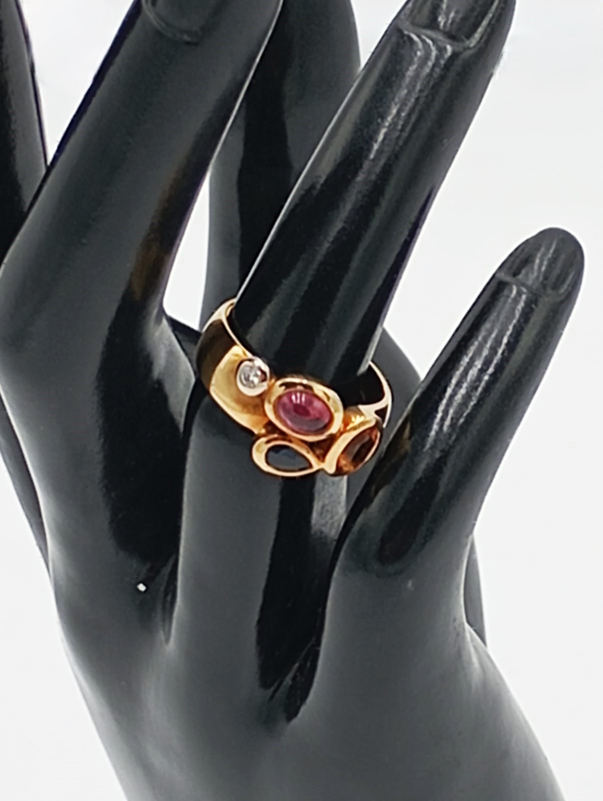 Pietre: una rossa (taglio ovale), una ambra, una verde