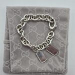 Un bracciale senza tempo.. Bracciale Gucci double dog-tag in argento, presenta le maglie grandi e ovali con due ciondoli a targhetta.