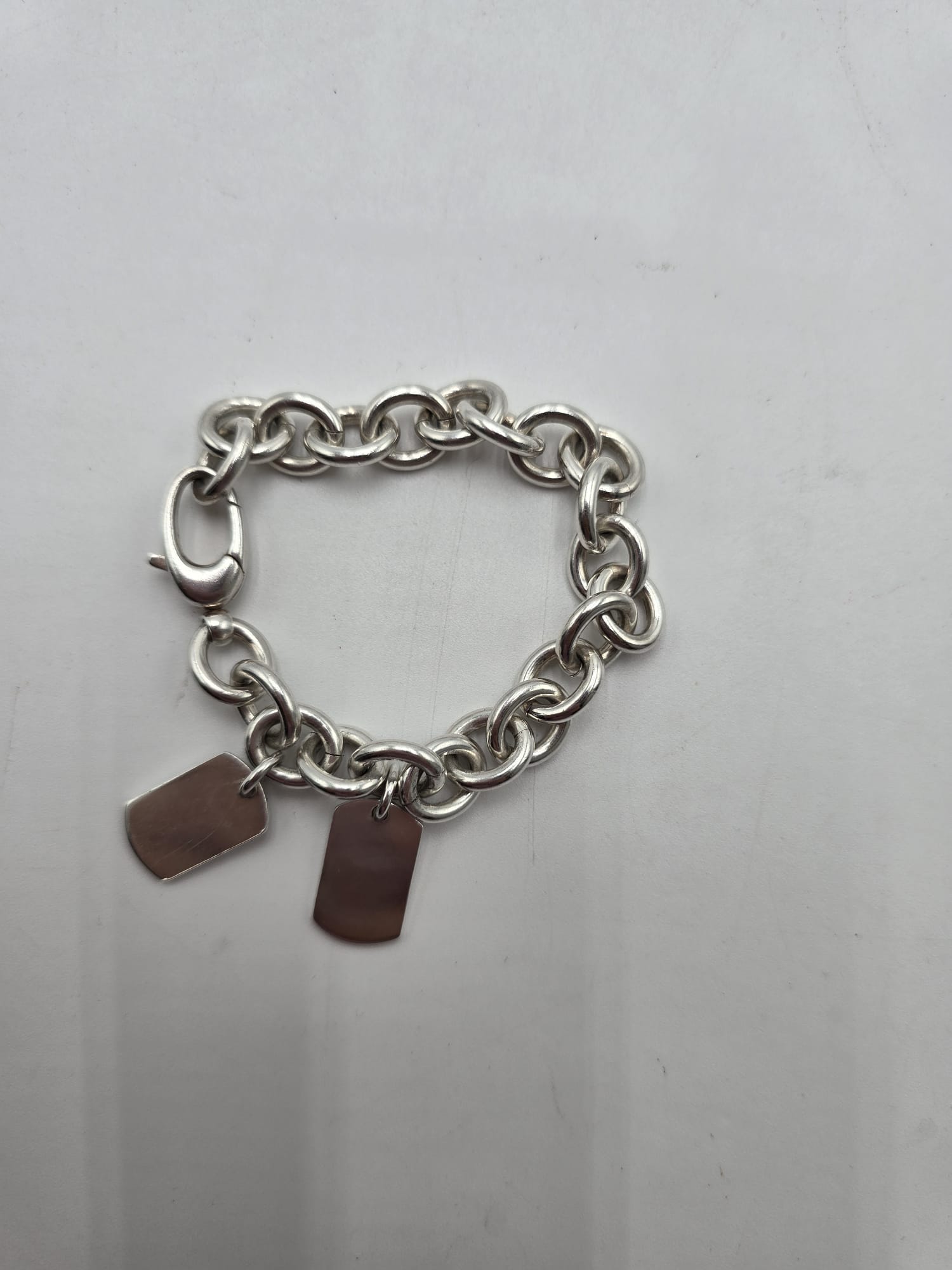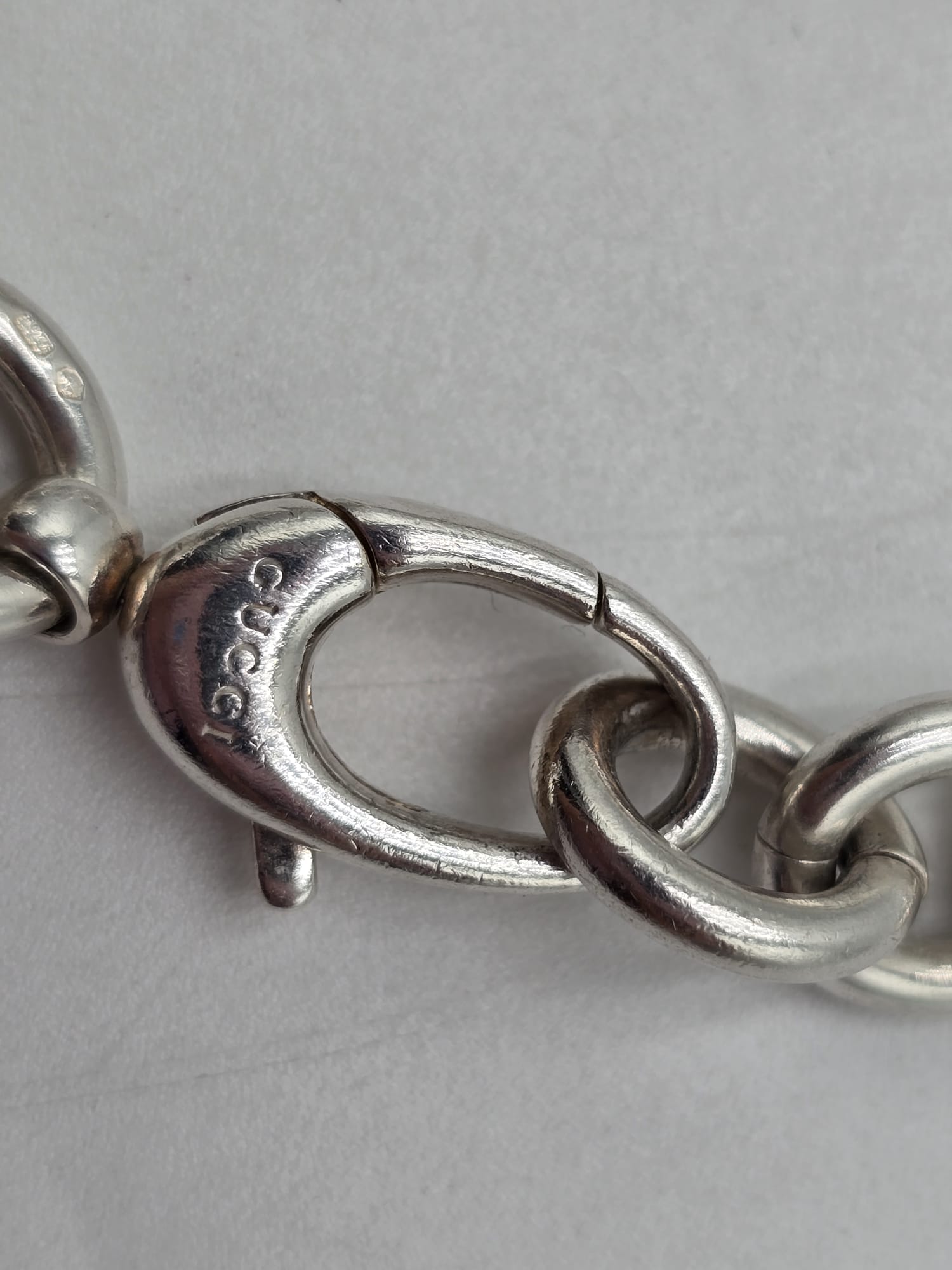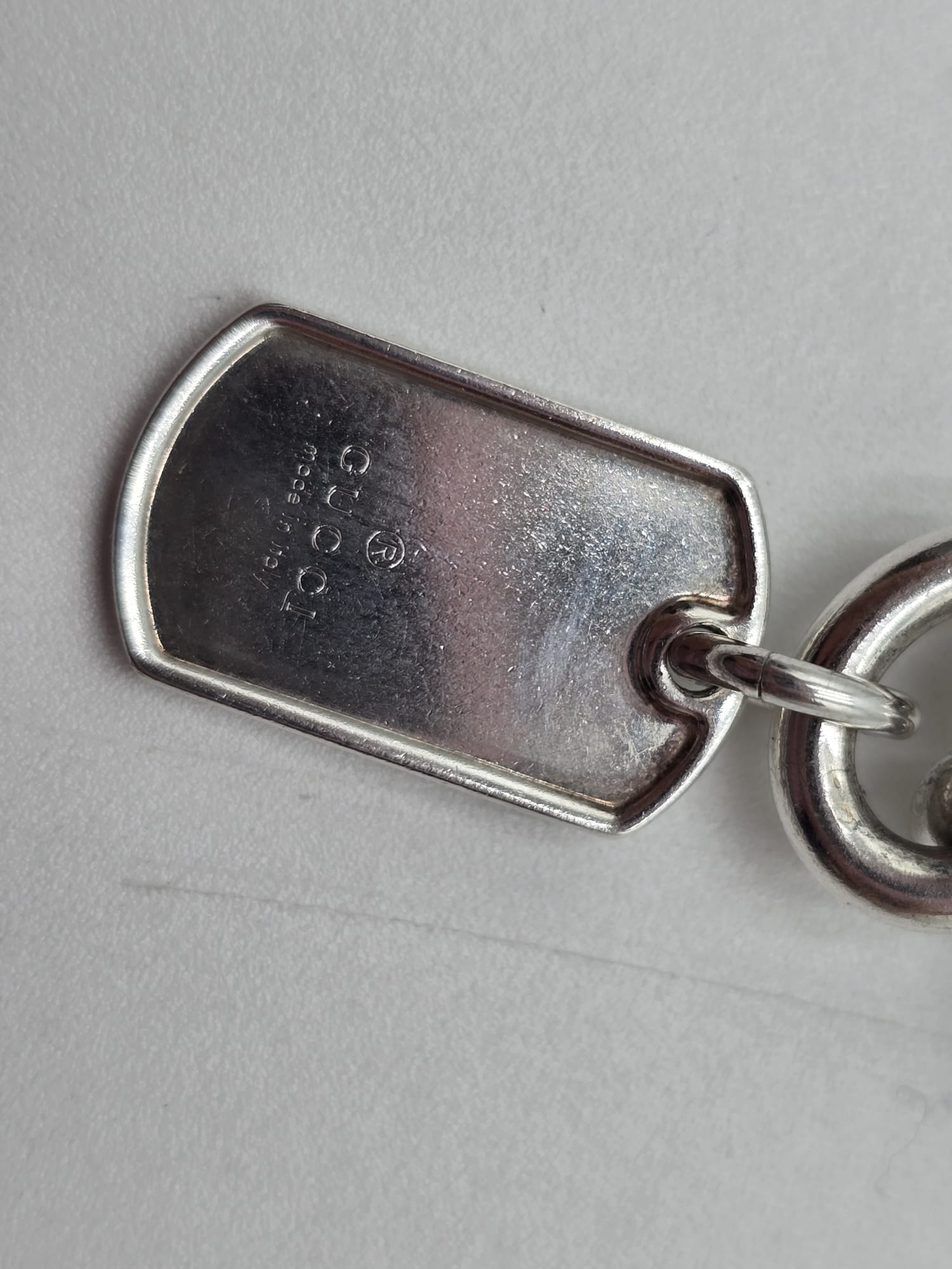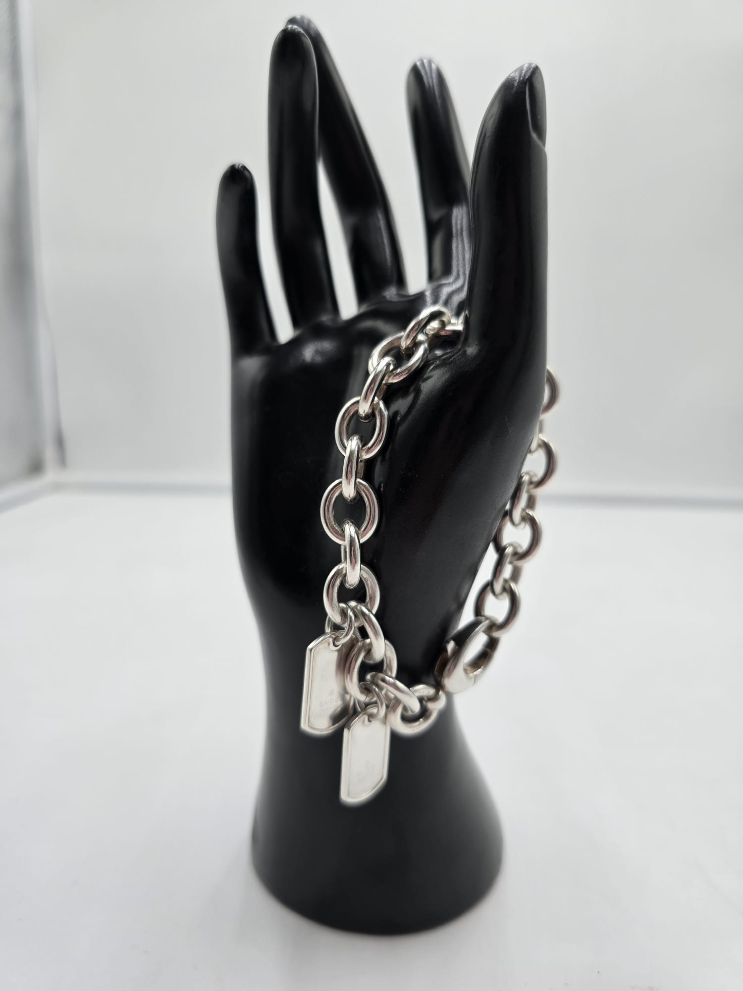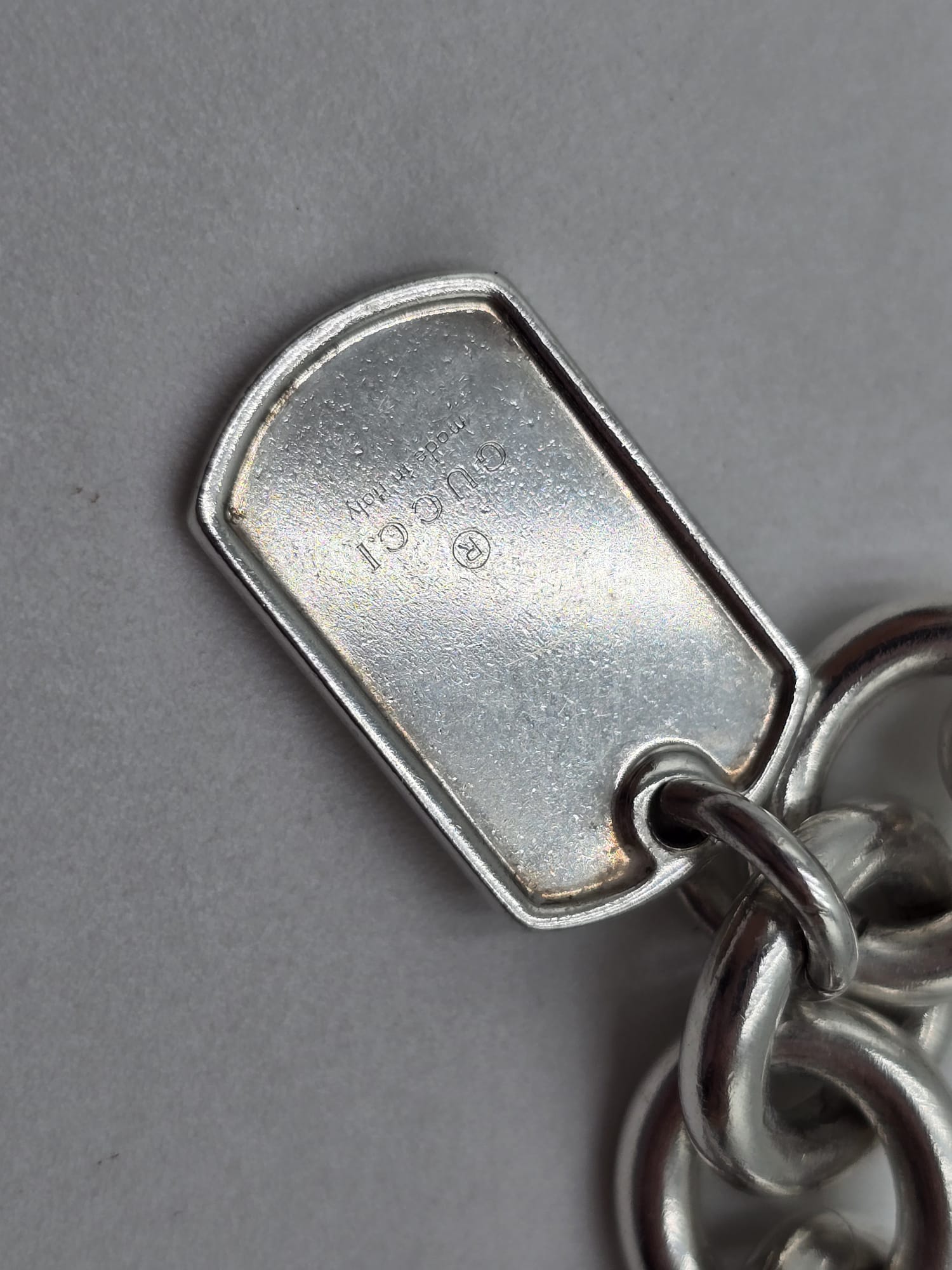 Un bracciale senza tempo.. Bracciale Gucci double dog-tag in argento, presenta le maglie grandi e ovali con due ciondoli a targhetta.
