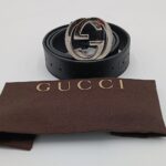 Dettagli: logo “GUCCI” inciso sul retro della fibbia e impresso all’interno