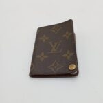 Porta tessere Louis Vuitton realizzato nella classica tela Monogram marrone con chiusura a bottone automatico dorato inciso “Louis Vuitton”. L’interno, rifinito in pelle liscia marrone, presenta scomparti dedicati per tessere, carte o documenti in formato compatto e funzionale. Il design sottile permette di riporlo comodamente in tasca o in una borsa senza rinunciare allo stile iconico della Maison. Le finiture precise e la texture inconfondibile della tela LV lo rendono un accessorio essenziale per chi ama eleganza e praticità in un unico oggetto.