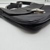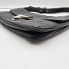 Borsa a spalla Prada baguette flap in morbida pelle di vitello color nero con cuciture a vista dettagli in argentato e la chiusura a pressione sulla patta frontale. La borsa ha una tracolla in pelle regolabile e rimovibile, quindi la borsa potrebbe essere usata anche come una pochette.