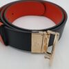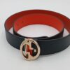 Gucci, cintura nera con interno rosso e fibbia GG dorata: lusso classico, carattere moderno.