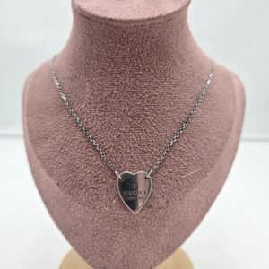 Collana Gucci in argento con ciondolo cuore inciso Gucci della collezione trademark..
