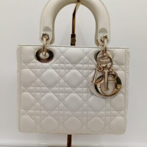 Un’icona senza tempo della maison Dior, sinonimo di eleganza e raffinatezza. Realizzata in pelle bianca con motivo Cannage impunturato, questa borsa unisce artigianalità impeccabile e design intramontabile.